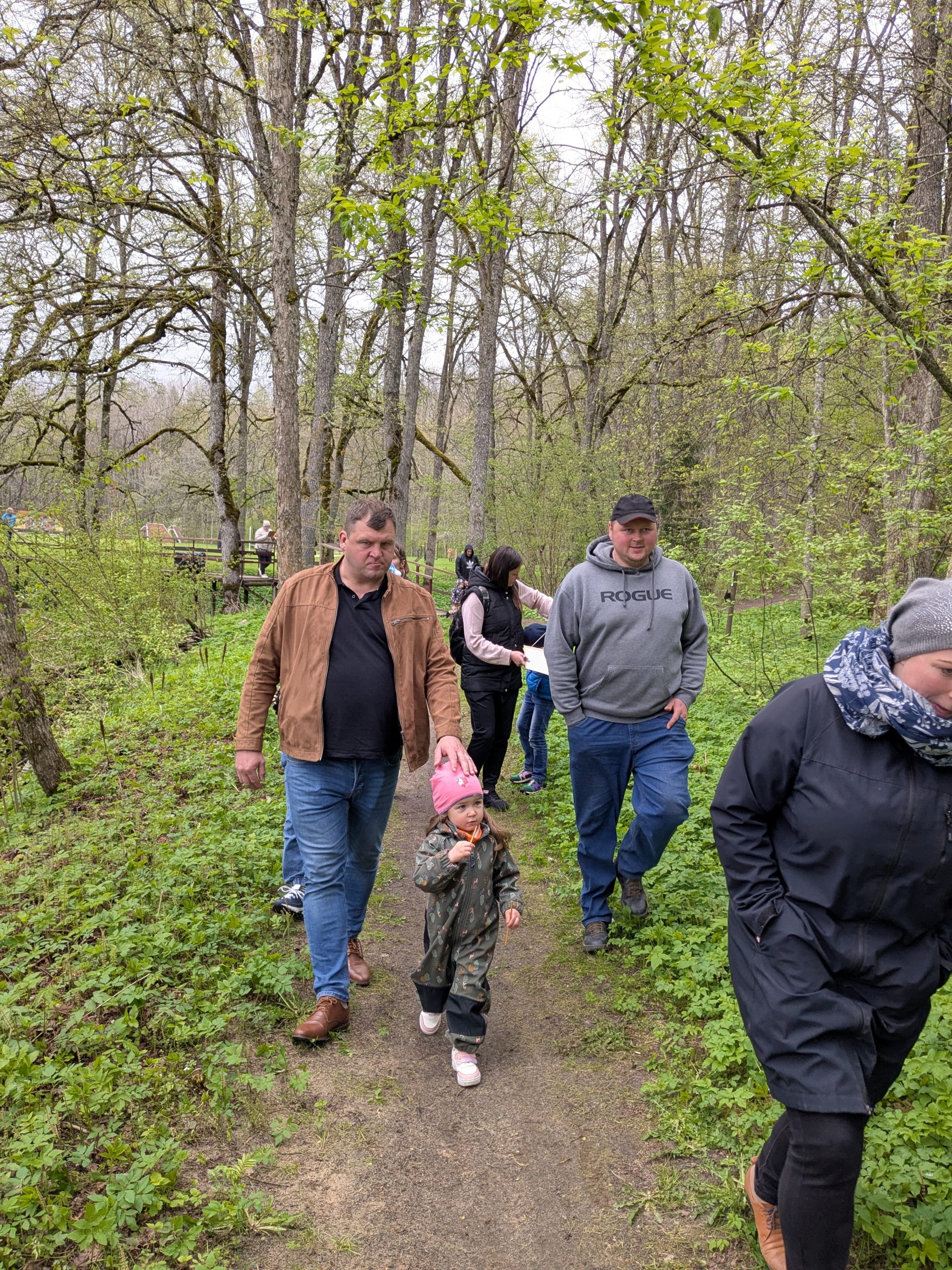 Pārgājiena laikā bērni kopā ar vecākiem ne tikai baudīja dabas mieru, bet arī piedalījās izzinošos uzdevumos. Viens no galvenajiem uzdevumiem bija saskaitīt koka figūras, kas attēlo meža dzīvniekus – lapsas, bebri, zaķus, vāveres un putnus. Tāpat viņi skaitīja putnu būrus, kas bija piestiprināti kokiem, lai iepazītu meža iemītnieku dzīvesvietas.