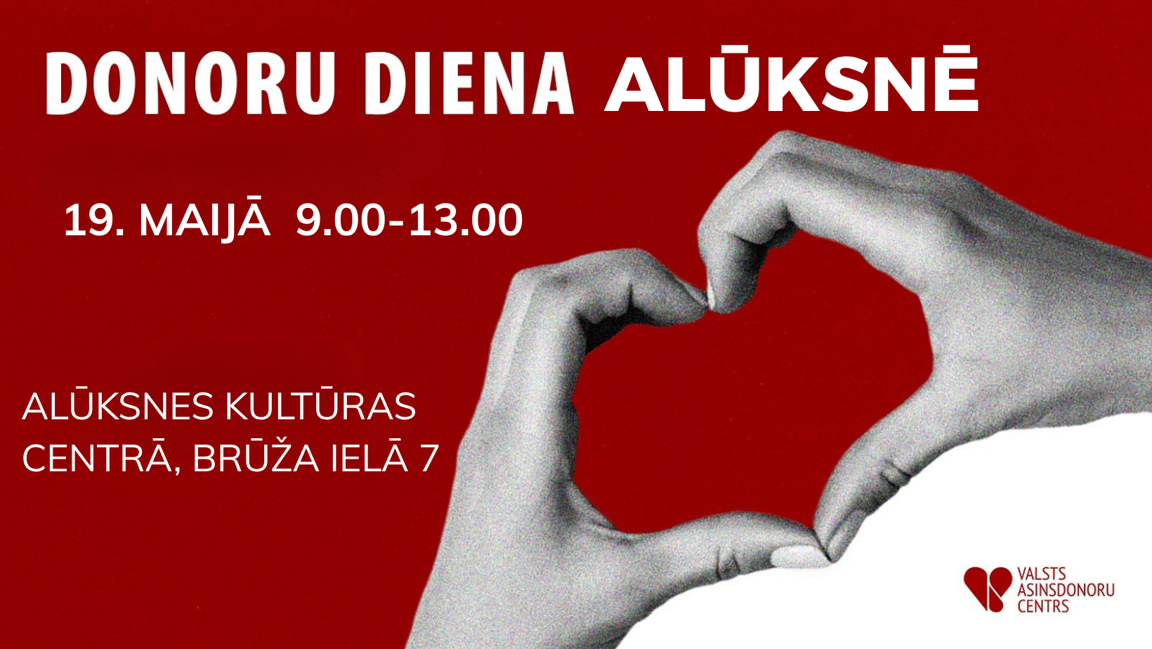 Valsts asinsdonoru centrs rīko donoru dienu Alūksnes Kultūras centrā, Brūža ielā 7, Alūksnē.