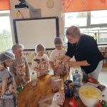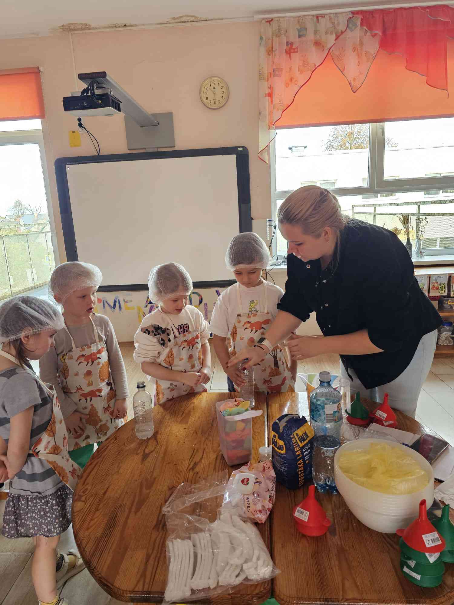 20.10.2025. bērni no 5.,11.un 4. grupām piedalījās STEM projekta nodarbībā ”Burbuļu maize – rauga darbības rezultāts”.