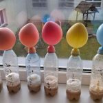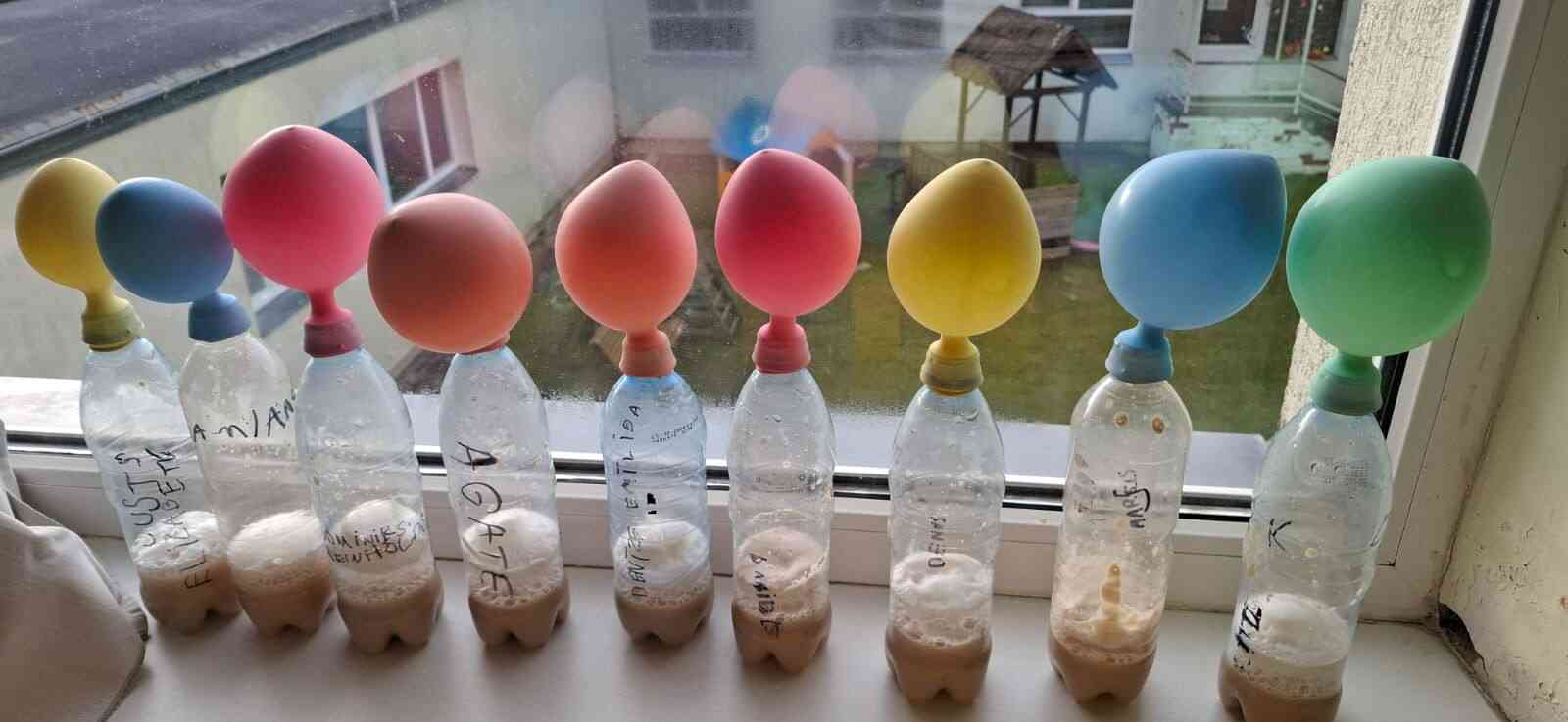 Bērniem bija iespēja trenēt pacietību, uzmanīgi vērojot, pamanot izmaiņas, salīdzinot un skaidrojot, kāpēc piepūšas balons uz ierauga pudeles un izdarot secinājumus.