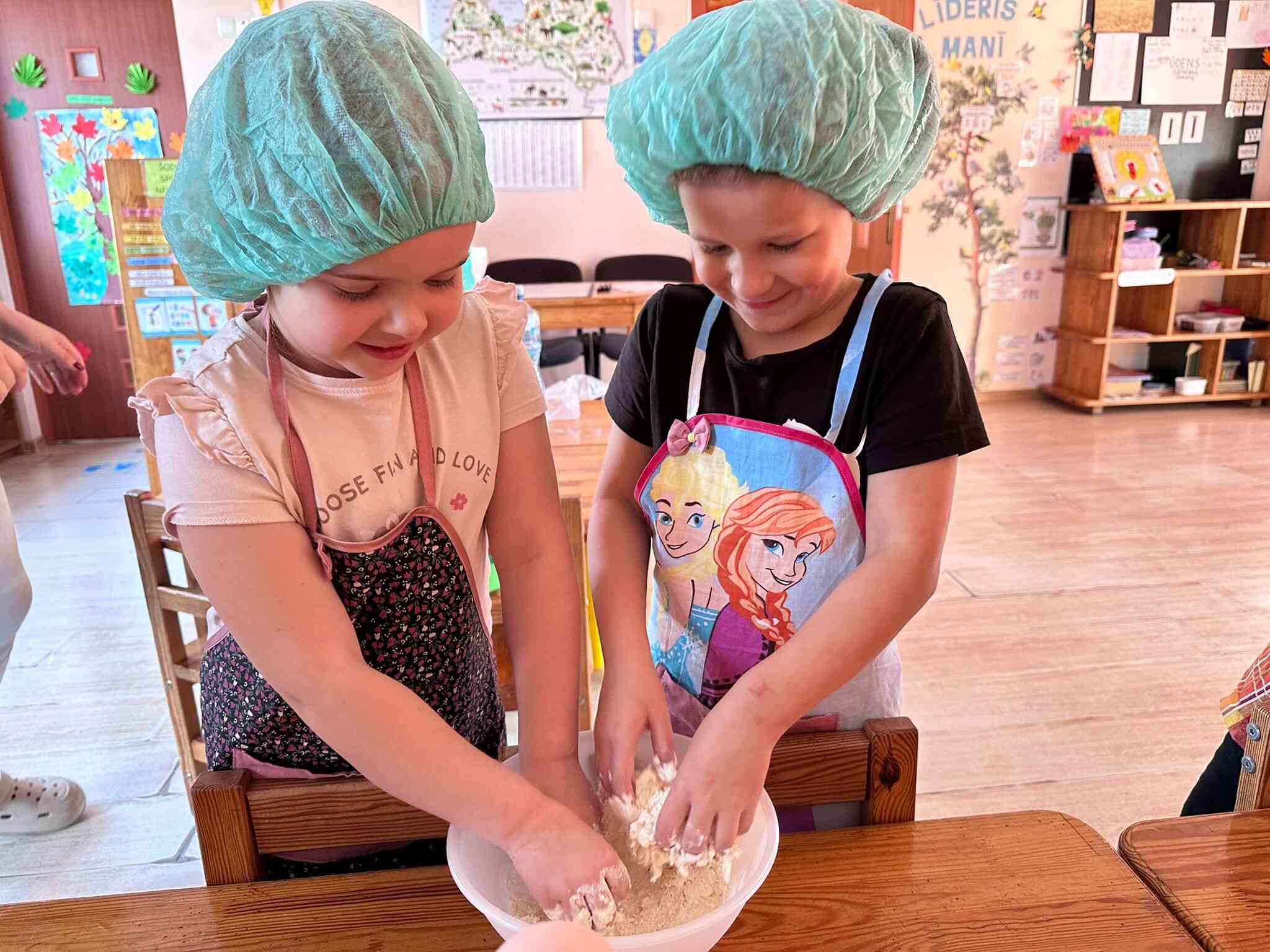 Mācījāmies no miltiem, silta ūdens un “atdzīvināta” rauga samīcīt mīklu, lai varētu izcept bulciņas, pīrāgus.
