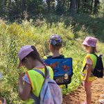 3) Lai mazinātu transporta kaitīgo izmešu daudzumu apkārtējā vidē, regulāri dodamies pastaigās un veicam dažādus apkārtējās vides likumsakarību pētīšanas uzdevumus. Ekspedīcija uz mežu. Pastaigās meklējām invazīvās sugas augu zeltslotiņu, fiksējām arī dārza sprigani u.c., iesūtījām Ekopadomei foto un adreses.