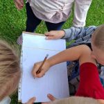 2) Uzsāka darbu pie uzdevuma “BĒRNUDĀRZA APKĀRTNES PLĀNS – MAKETS” gatavošanas, sadarbojoties ar 10.grupas bērniem. Mācījās, kas ir kartēšana un praktiskā darbībā kartēja apkārtni ap bērnudārzu. Pētīja augus, kokus, kukaiņus, putnus un citas dzīvās radības, dažādus reljefus zemes virsmas, segumus
