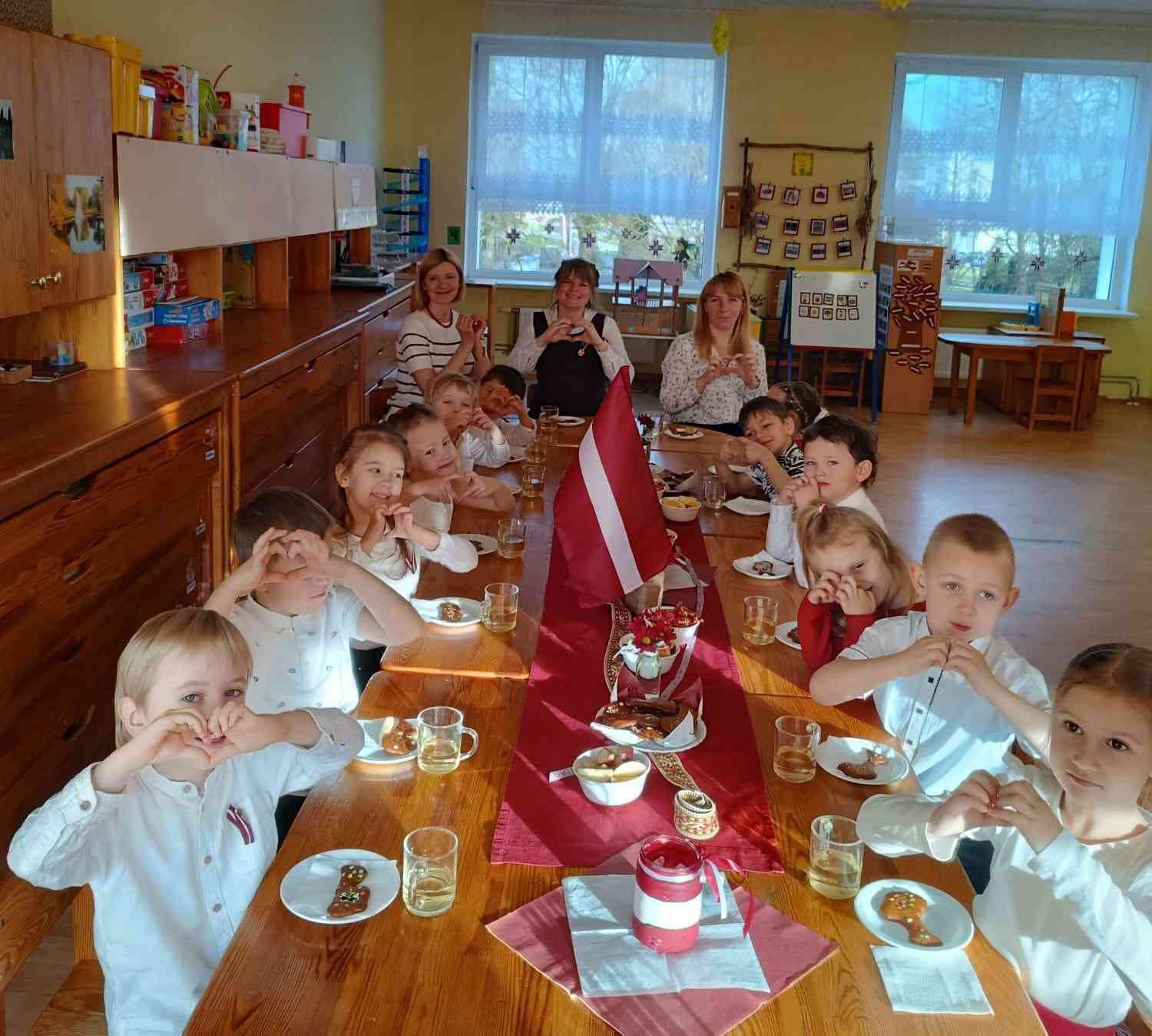 Gatavojoties Latvijas dzimšanas dienai, bērni rotāja grupu, cepa cepumus Latvijas kontūras formā, mācījās tautasdziesmas un dejas. Svētku dienā tika klāts svētku galds un sagaidīts īpašs viesis – iestādes apkopēja Marija, kurai bērni ar prieku veltīja savus priekšnesumus.