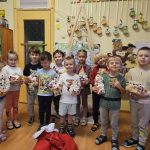 Lai gan decembris šogad nelutināja ar sniegu, tas netraucēja ienest grupā īstu svētku noskaņu. Katru dienu bērnus iepriecināja Rūķu pasts ar pārsteigumiem un uzdevumiem. Tika veidots gaidīšanas laika veicamo darbu plāns — rotājumu gatavošana, telpu pušķošana, dāvanu darināšana, piparkūku cepšana, dziesmu un dzejoļu apguve, EKO eglītes rotāšana. Visi kopā apmeklējām Ziemassvētku muzejpedagoģisko programmu “Atver durvis Jaunam gadam.” Iestādes rotaļu laukumā notika Ziemassvētku ieskandēšanas pasākums, kur bērni un vecāki pilnveidoja zināšanas par latviskajām svētku tradīcijām un baudīja kopā būšanu ar savu ģiemeni.