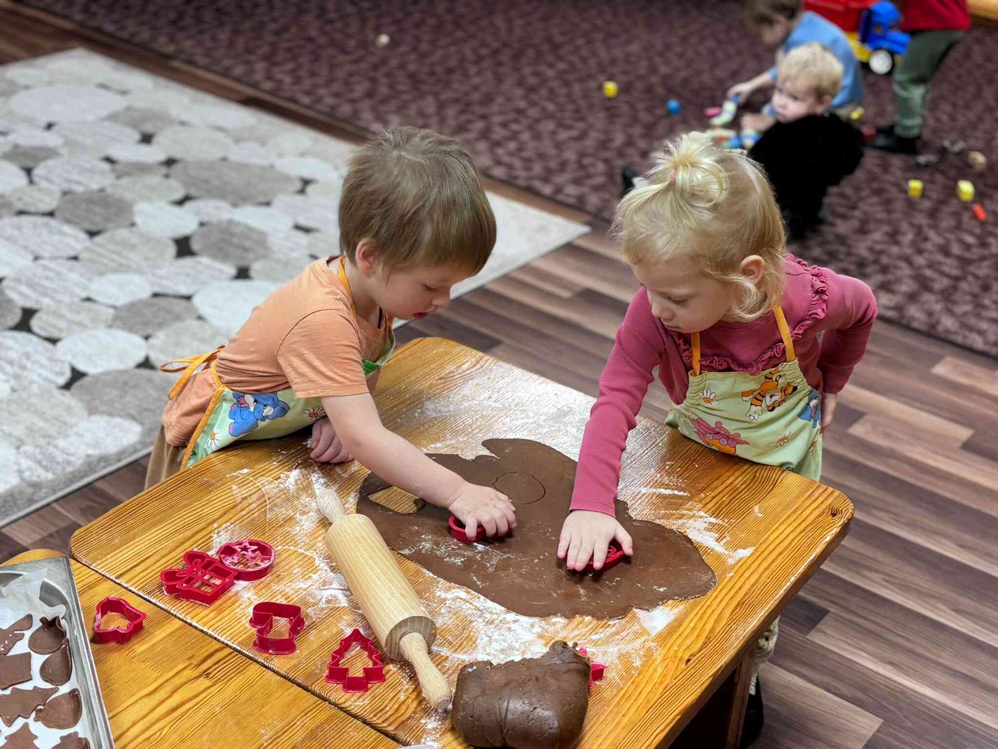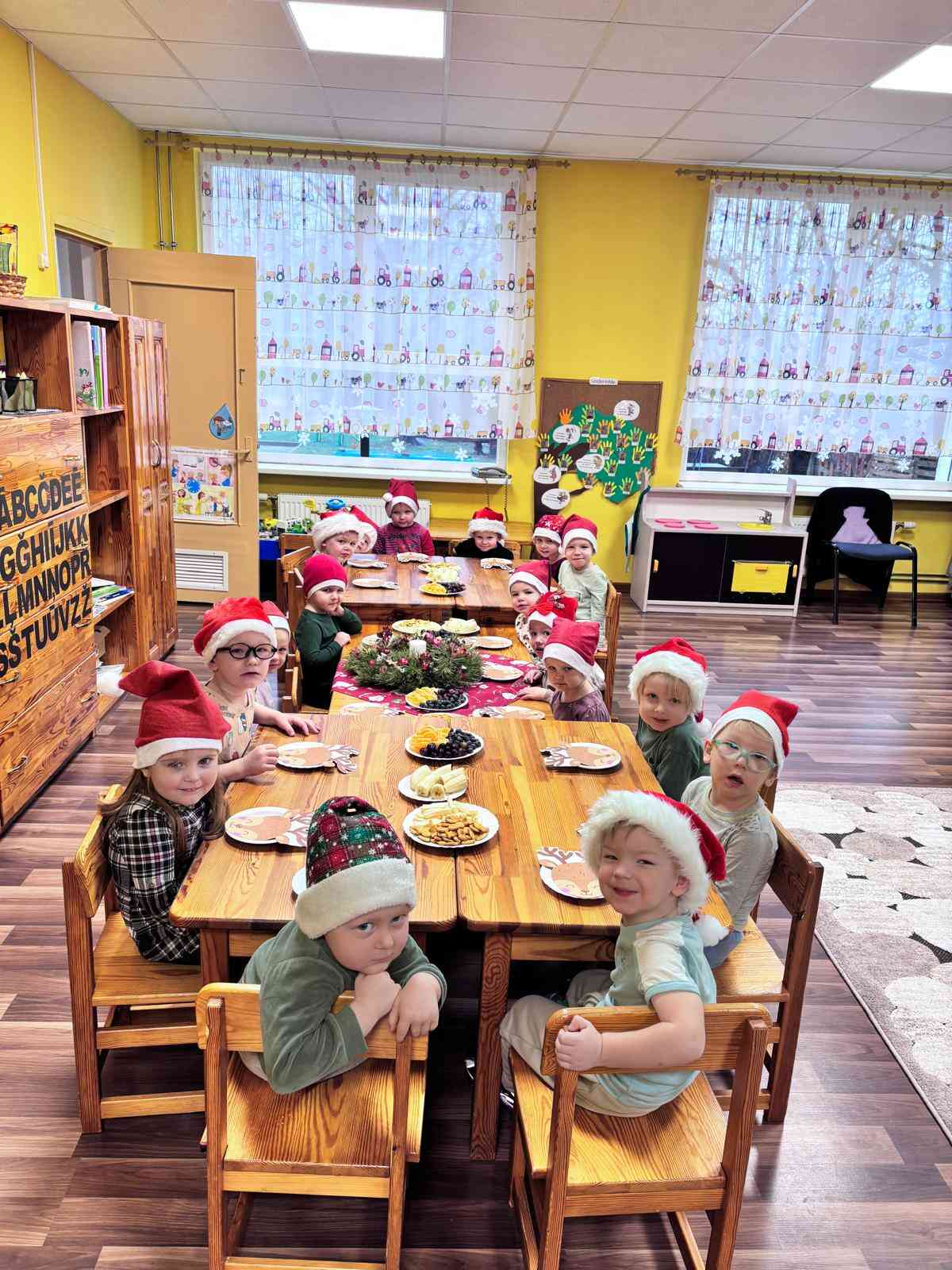 Decembrī pārrunājām, kas ir Ziemassvētki, kā tos svin un kā tiem gatavojas. Rosinājām bērnus piedalīties kopīgā piparkūku cepšanā – tas visiem ļoti patika, un ikviens ar prieku iesaistījās. Mācījāmies arī par putnu barošanu ziemā, vērojām putnus aiz loga un iepazinām tos, kas apciemo mūsu putnu barotavu. Šis laiks bija pilns gaidīšanas, piedzīvojumu un gatavošanās Ziemassvētkiem, kā arī mūsu pirmajam koncertam vieniem pašiem uz skatuves. Tas izdevās un arī paši bērni bija lepni par padarīto.