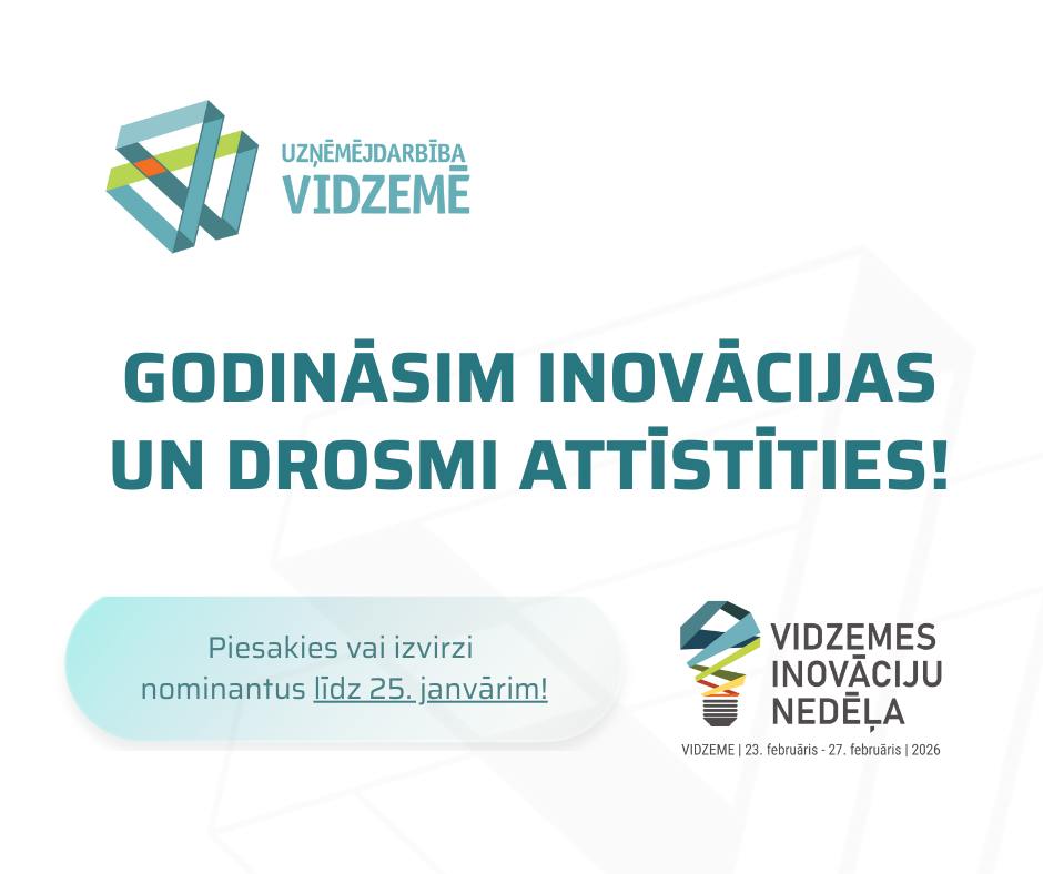- Organizāciju pieteikšanai Vidzemes inovāciju balvas specbalvai: https://ej.uz/ctx6