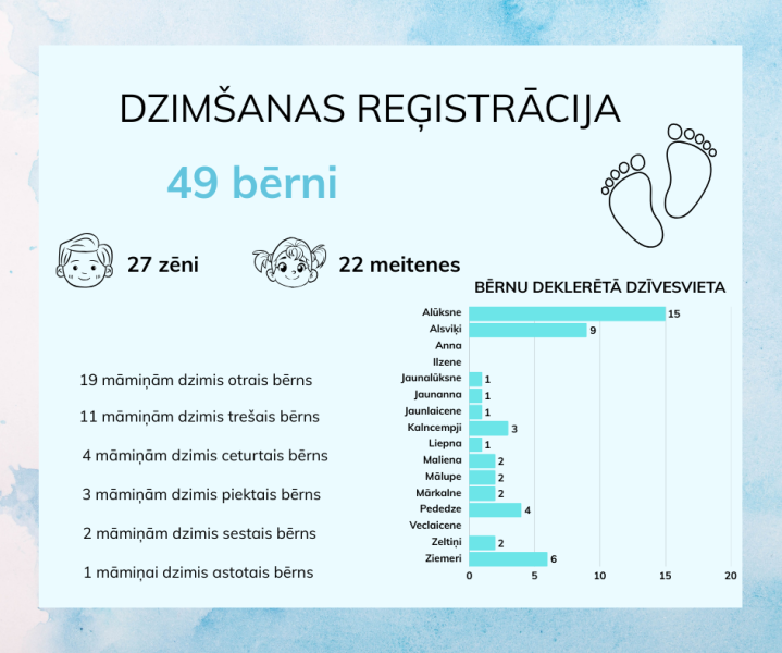 • no reģistrētajiem jaundzimušajiem 27 zēni, 22 meitenes,