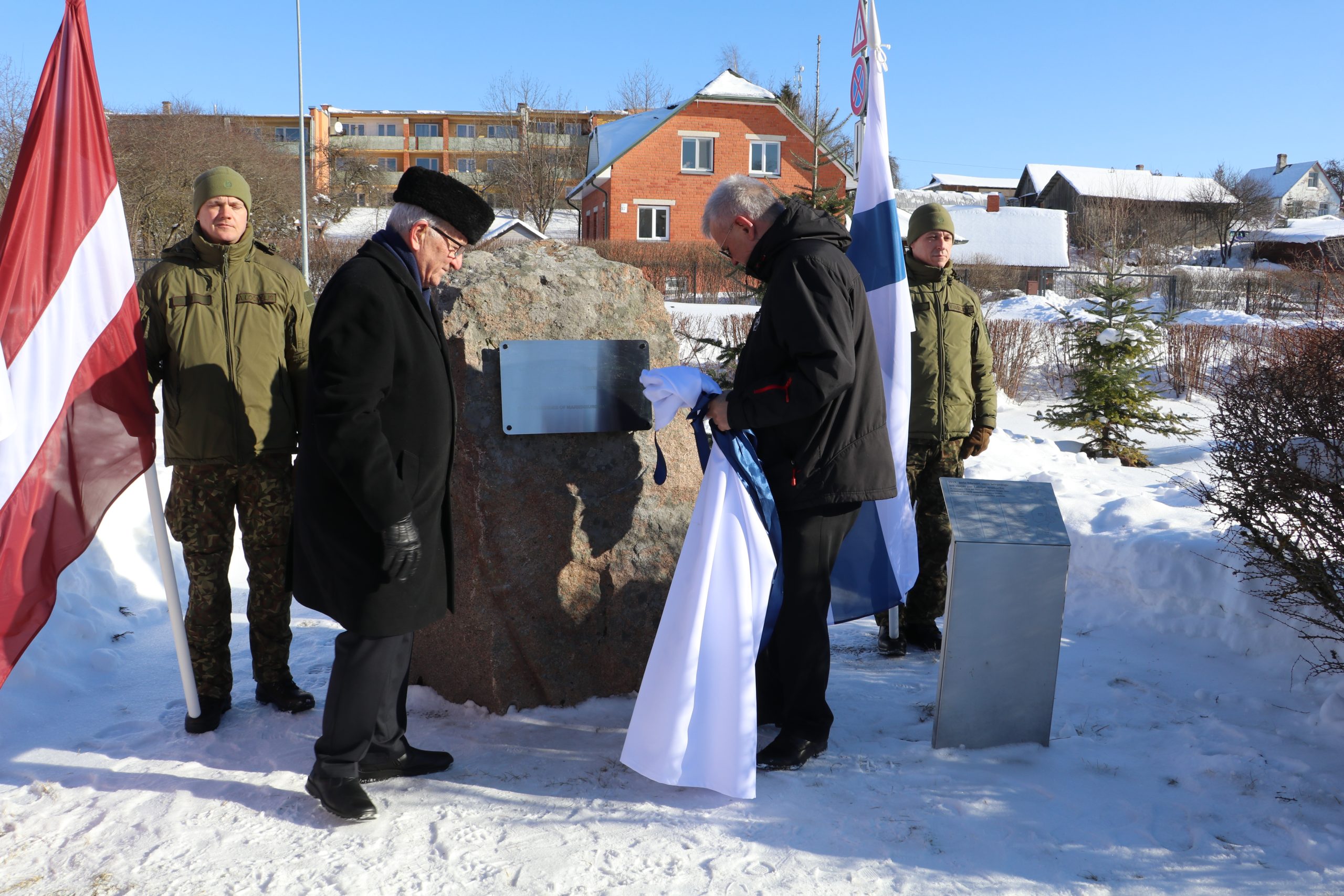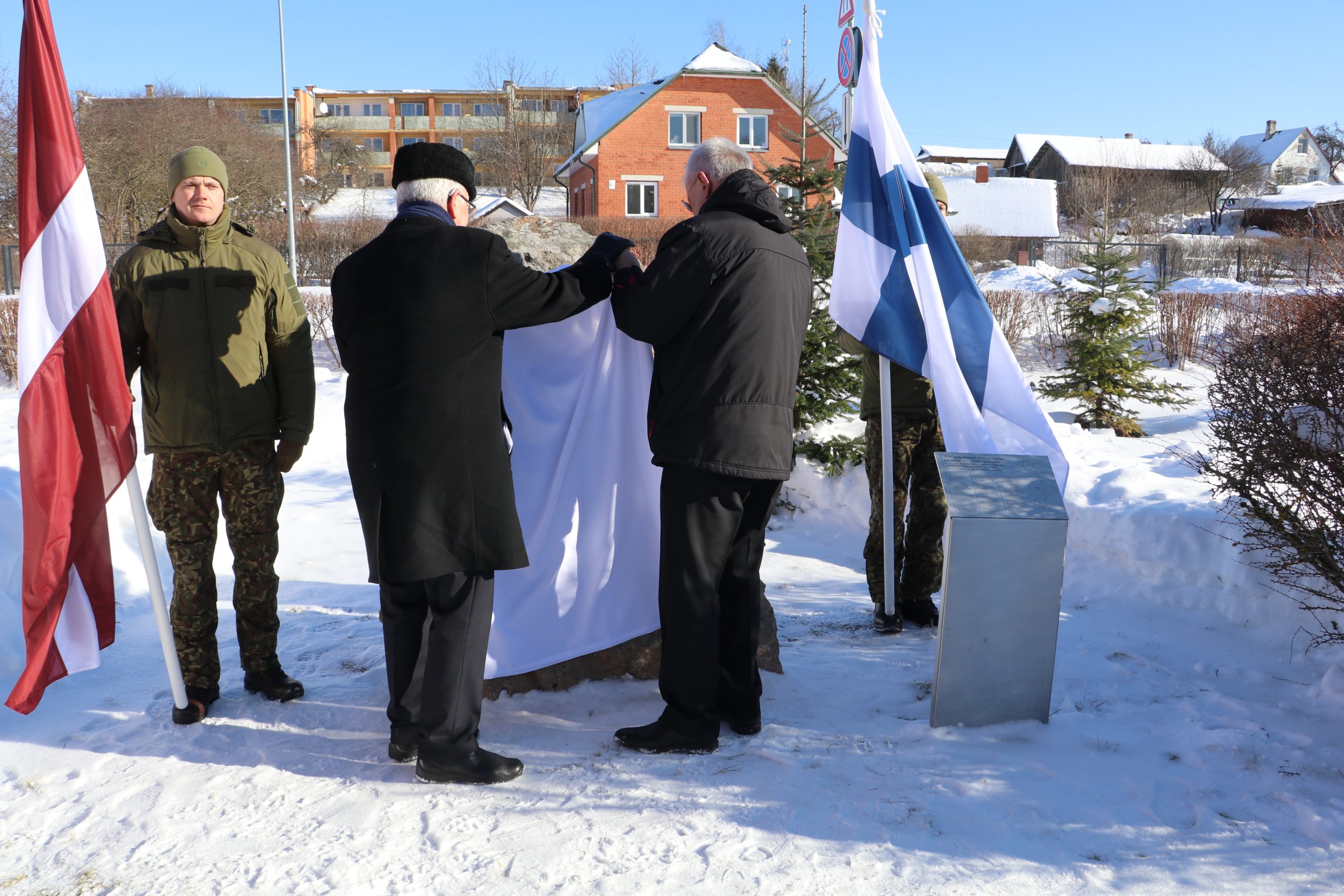 Somijas pārstāvji pateicās arī Alūksnes novada pašvaldībai par līdzšinējo sadarbību brīvprātīgo “Ziemeļu zēnu” piemiņas glabāšanā, Arturam Dukulim pasniedzot Somijas Neatkarības kara tradīciju biedrības galda karodziņu ar Tamperes pilsētas ģerboni.