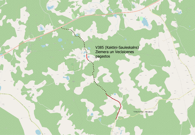 V385 “Kaktiņi–Sauleskalns” Ziemera un Veclaicenes pagastos.