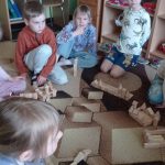 Pirmsskolas grupa nodarbībā “Es, tu, mēs kopā!” , izmantojot spēli “Mūsu ciemats”, no klucīšiem veidoja simbolisku ciematu , kurā katram bērnam bija sava “māja” vai “loma” , piemēram, skolotājs, pastnieks, ārsts. Nodarbības laikā bērni mācījās sadarboties, atšķirt labu rīcību no sliktas, novērtēt savu ieguldījumu kopīgi veicamā uzdevumā.