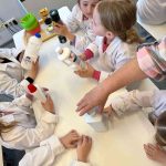 Turpinājumā nodarbību “Vannas istabas briesmonīši” vadīja SIA “ZAAO” vides izglītības realizēšanas vietas Dabas un tehnoloģiju parka “URDA” darbiniece Laura VĪGANTE, kura, bērniem par lielu prieku ir Skudra Urda.