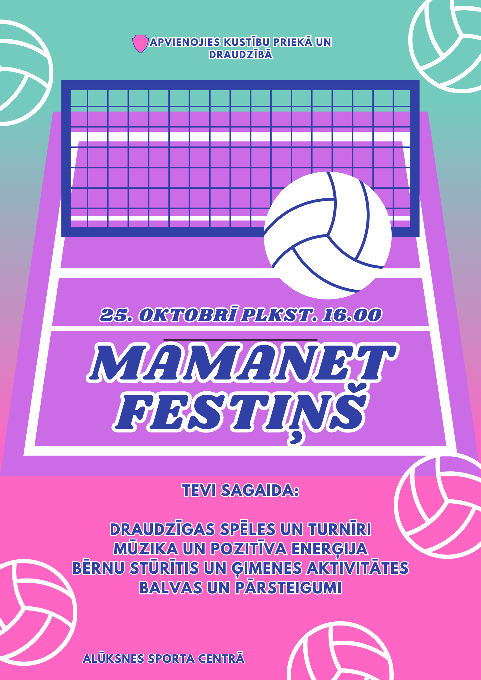 Nāc uz Mamanet festiņu, kurā tevi sagaidīs spraigas, bet draudzīgas spēles, mūzika, prieks un kopības sajūta, aktivitātes visai ģimenei, balvas, pārsteigumi un, protams, neaizmirstamas emocijas!