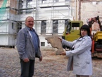 Ļeņina skulptūras vidusdaļa atrasta Alūksnes Jaunās pils kompleksa ēkas - Ledus pagraba rekonstrukcijas laikā (Andreja Lazdiņa foto) |